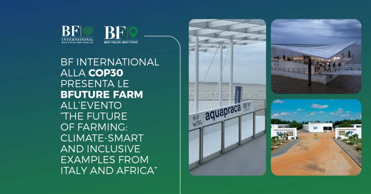Nello specifico, il 13 novembre alle ore 11:30, al Padiglione Italia nella Blue Zone, si terrà l’evento “The Future of Farming: Climate-Smart and Inclusive examples from Italy and Africa”, durante il quale BF International insieme alla sua società AESA – leader globale nella consulenza per lo sviluppo sostenibile in ambito agricolo, rurale e socioeconomico e nella resilienza al cambiamento climatico – presenteranno il progetto BFuture Farm. Prevista la partecipazione di rappresentanti dell’Unione Africana, della Banca Africana per lo Sviluppo (AfDB), del Ministero degli Esteri e della Cooperazione Italiana e delegati dei paesi africani coinvolti nel progetto di BFI.